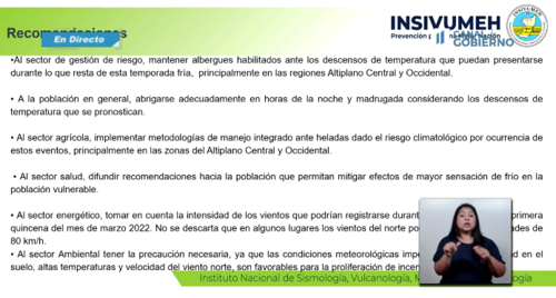 La temporada fría podría terminar la primera quincena de marzo, según dio a conocer César George de Meteorología del Instituto Nacional de Sismología, Vulcanología, Meteorología e Hidrología (Insivumeh).
