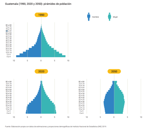 La población guatemalteca se distinguía por presentar un elevado número de personas jóvenes, hasta la década de los 2000, la proporción de personas de 0 a 14 años representaba el 40% de la población. Pero, según el análisis, esta composición de la población por edad está en proceso de transformación.