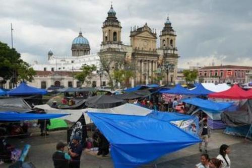 Maestros afiliados al Sindicato de Trabajadores de la Educación de Guatemala (STEG) marchan hacia la capital por varias rutas del país para exigir una serie de demandas y unirse al plantón que se realiza desde hace varias semanas.