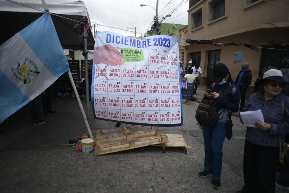 "Ya se van", así se lee en una cuenta regresiva colocada en el plantón ubicado frente a la sede central del Ministerio Público (MP), donde exigen la renuncia de la fiscal general, Consuelo Porras.