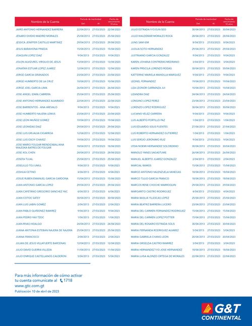 Estos son los listados de las cuentas bancarias que podrían quedar inactivas: