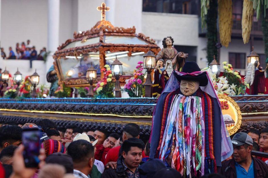 Además de cargar el anda procesional, los residentes del lugar llevaron consigo al Rilaj Mam (el Gran Abuelo), más conocido como Maximón, el cual fue colocado dentro del Despacho Municipal.