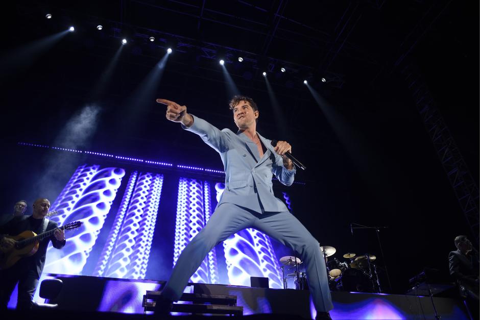 El cantante español, David Bisbal, salió al escenario con un llamativo traje celeste y, con la energía que le caracteriza, encendió al público guatemalteco en el concierto que realizó este viernes 24 de mayo en la ciudad de Guatemala.