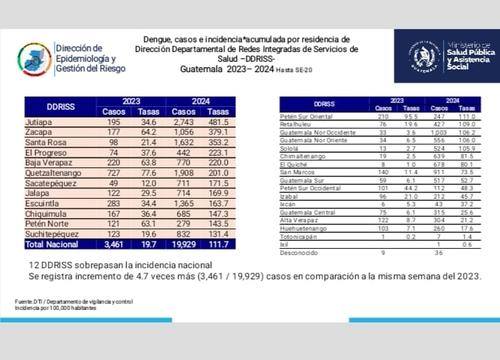 Debido al incremento de casos de dengue en el país, el Ministerio de Salud Pública y Asistencia Social declaró alerta roja institucional, este 24 de mayo.