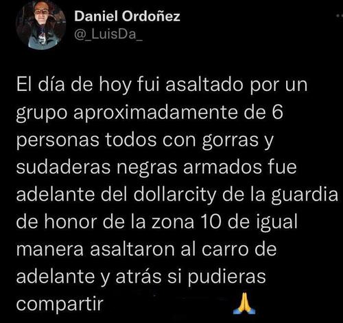 En noviembre pasado, una persona narró en sus redes sociales la forma en la que fue víctima de un asalto en la 10a calle de la zona 10. En esa publicación, el afectado detalló que diez hombres cometían atracos en los autos que se encontraban en el tránsito detenido.