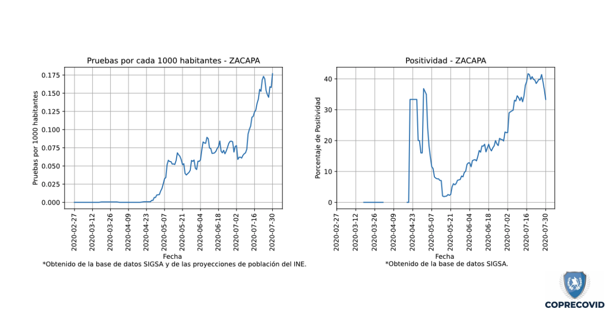 Zacapa es otro departamento que ha presentado un incremento de casos. El Tablero Covid reporta 620 casos acumulados y una tasa de incidencia de 231.6 por cada 100 mil. Los municipios con más casos son Zacapa, 402; Teculután, 44; y Gualán, 42.