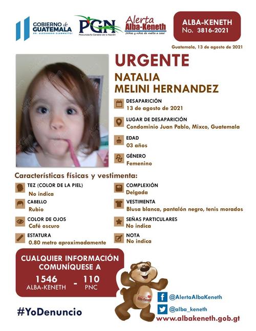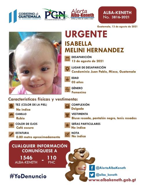 Se ha pedido a la población reportar cualquier información sobre el paradero de las niñas a los números 1546 del sistema Alba-Keneth o al 110 de la Policía Nacional Civil.