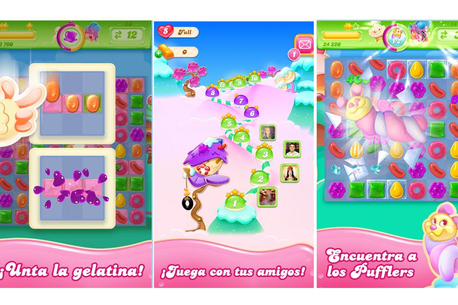 En esta ocasión es el turno de “Candy Crush Jelly Saga”, un nuevo título con una dinámica similar y donde la mermelada es la protagonista. Con mejoras visuales y algunas modificaciones al momento de jugar. El jugador siempre debe de juntar como mínimo tres piezas del mismo tipo para poder avanzar.