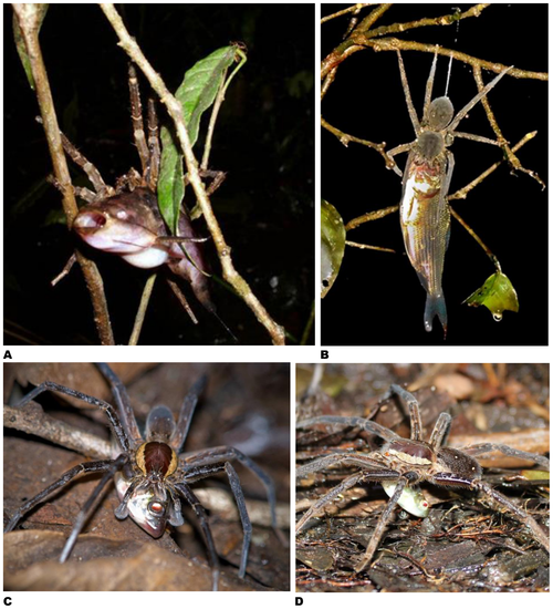 Los arácnidos tienen también potentes neurotoxinas y enzimas que les permiten matar y digerir los peces que son a menudo más grandes y más pesados que su propio peso corporal. Los pescados capturados por las arañas eran, en promedio, dos veces más grandes que ellas.