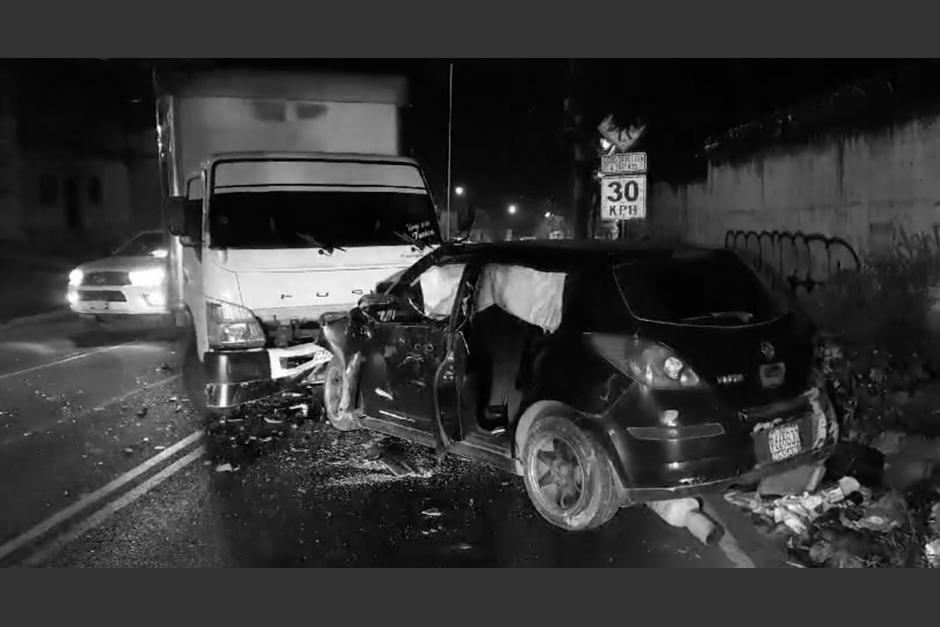 Según las imágenes, el auto de la víctima quedó destrozado tras el fuerte impacto que sufrió en la parte delantera de un camión, donde quedó empotrado.