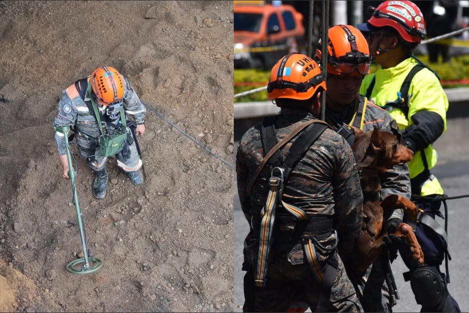 Socorristas han utilizado equipo especial para la búsqueda de dos mujeres que siguen desaparecidas y que cree que habrían caído dentro de los nuevos agujeros que se formaron en la zona 6 de Villa Nueva.