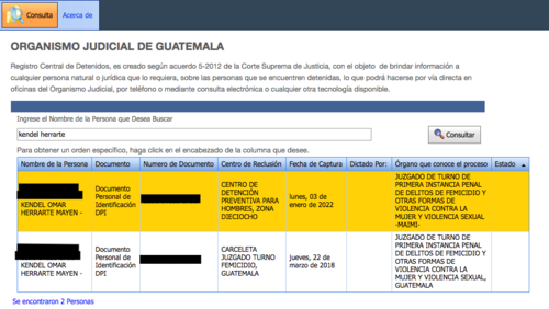 Esta es la segunda vez que Herrarte se enfrenta a la justicia. En marzo de 2018, Kendel Herrarte, fue capturado por la Policía Nacional Civil (PNC) después de un entrenamiento cuando jugaba para Comunicaciones.