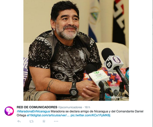 "Yo soy un soldado de Ortega", dijo Maradona, según palabras recogidas por el portal gubernamental El 19 Digital.