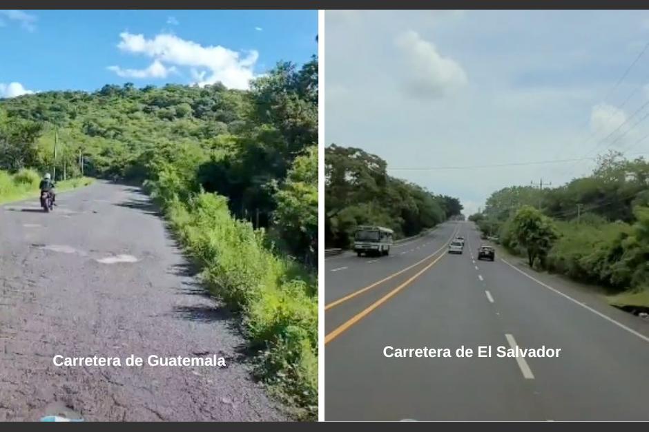 Aunque Guatemala y El Salvador son países vecinos, un video revela que existe una diferencia en cuanto a la infraestructura vial, al menos, en los primeros kilómetros desde la frontera que divide ambas naciones.