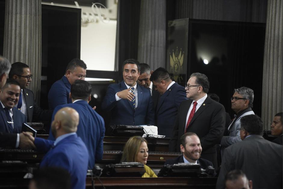 Mientras el tercer secretario, Raúl Solórzano, daba lectura a la propuesta de incrementar en Q14.5 millardos el Presupuesto General de la Nación, varios congresistas festejaron al representante de Chimaltenango Pablo Cifuentes.