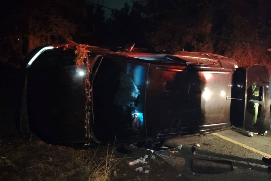 El vehículo en el que se movilizaba el diputado electo por el Movimiento Semilla, Samuel Pérez, quedó volcado en la carretera. (Foto: Bomberos Voluntarios)