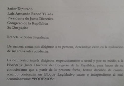 Tal como lo anticipó Soy502, tras la salida de varios diputados de la bancada Libertad Democrática Renovada (Lider) y del Partido Patriota (PP), nace un nuevo bloque legislativo mixto denominado “PODEMOS”.
