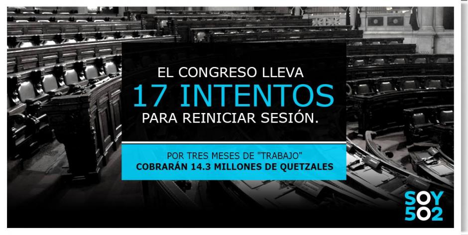 Debido a esta prolongada ausencia, Soy502 realizará un conteo por sesión, cuántos diputados participan y cuántos se ausentan, esto con el fin de elaborar un listado que agrupe a los legisladores que no asisten al Pleno.