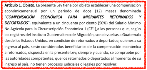 Identificada con la nomenclatura 6503, la propuesta se hizo oficial en febrero y plantea otorgar un bono único de Q2 mil a los migrantes que sean repatriados desde EE. UU.