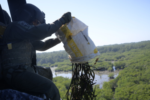 Recientemente se conoció que el Ejército de Guatemala realiza vía aérea la dispersión de 200 mil semillas de mangle, con las que buscan recuperar más de 50 hectáreas en Las Flores, Monterrico.