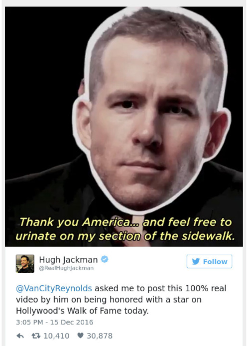 — Ryan Reynolds (@VancityReynolds) 5 de marzo de 2017