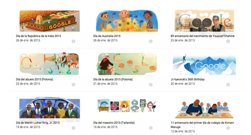 Si disfrutas de la creatividad con la que el personal de Google festeja las fechas conmemorativas, dale clic al botón de “voy a tener suerte” y encontrarás un archivo de todos los doodles que la compañía ha hecho.