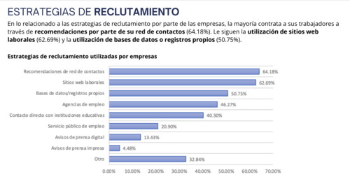 Un hallazgo muy relevante es el de las estrategias de reclutamiento por parte de las empresas, y como encuentran a los candidatos para cubrir las vacantes.