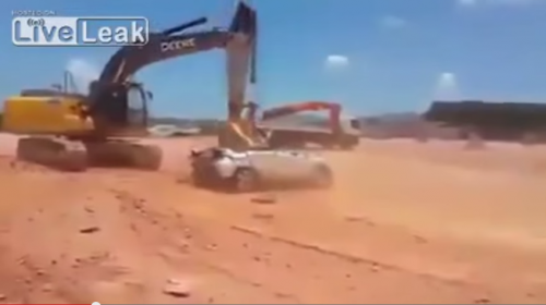 La retroexcavadora se encontraba trabajando en un puente en construcción, cuando el operador perdió el control, cayó y aplastó a por lo menos seis automóviles.