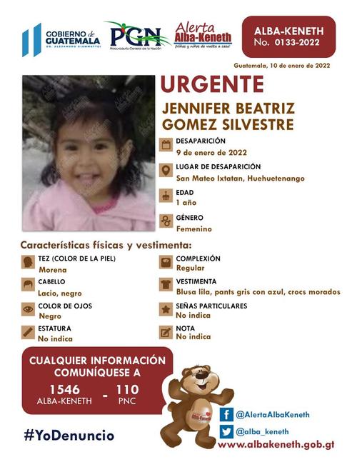 El domingo 9 de enero se reportó la desaparición de las hermana Jennifer Beatriz y Jessica Marily Gómez Silvestre, de 1 y 3 años de edad respectivamente.
