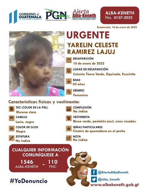 El lunes 10 de enero se activaron las alertas para dar con el paradero de Yarelin Celeste Ramírez Lajuj de dos años y Elma Mabeth Ramírez Lajuj de 17 años.