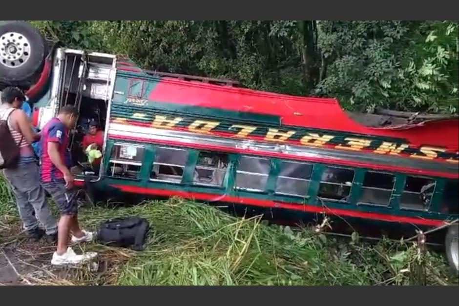 En el kilómetro 137 de la ruta al Pacífico se reportó que un autobús con pasajeros, que se dirigía hacia la Ciudad de Guatemala, volcó en un barranco cerca del Puente Nahualate.