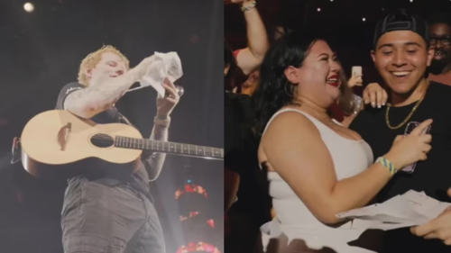 De esta manera, Sheeran decidió interrumpir su concierto para cumplir el deseo de sus fans. "Volveré a cantar "Perfect", pero siento que esta es la primera vez que hago algo así", señaló el músico mientras se encontraba abriendo el sobre.