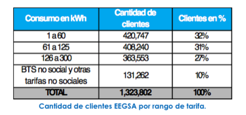 Las nuevas tarifas serán de Q 1.20/kWh para la Tarifa Social y Q 1.29/kWh para la Tarifa No Social. En total, serán beneficiados 1,323,802 usuarios, según las cifras registradas por la EEGSA.