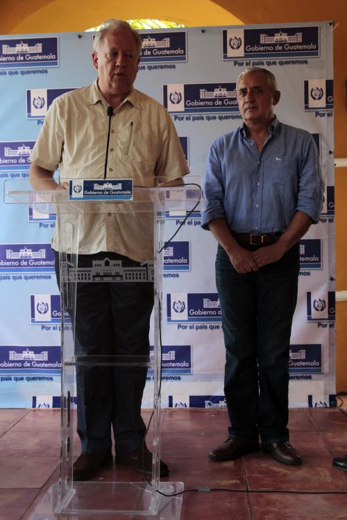 El presidente Otto Pérez Molina junto al Consejero del Departamento de Estado, Thomas Shannon en conferencia de prensa. (Foto: Esteban Biba/EFE)