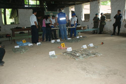 Una patrulla naval del ejército interceptó en el Río San Pedro, aldea El Naranjo, Petén, una pequeña embarcación donde dos hombres que lograron huir transportaban tres costales con dólares.