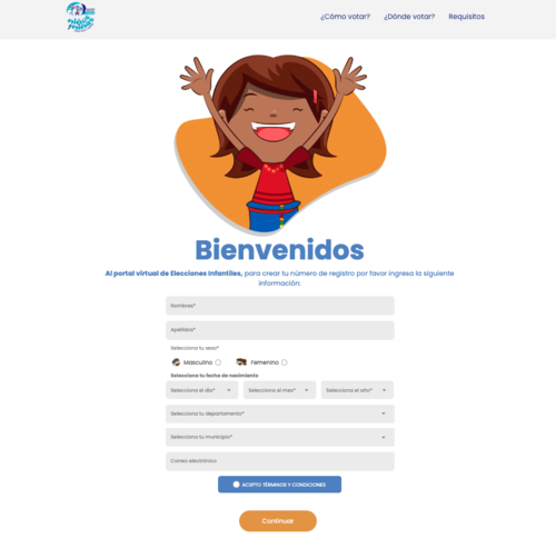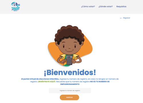 Primero, regístrate en línea ingresando a la página web, eleccionesinfantiles.org