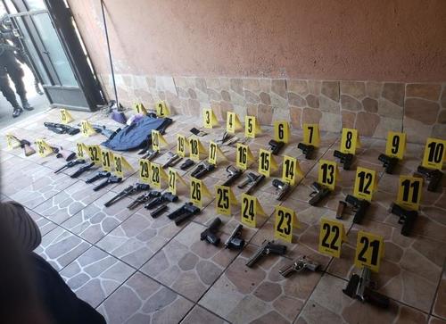 En el inmueble se localizó una bóveda con 495 mil quetzales y 34 armas de fuego. Además, los agentes de la Policía Nacional Civil (PNC) hallaron 1,251 municiones de diversos calibres, un chaleco antibalas y una identificación similar a la que utilizan agentes de la División Especializada en Investigación Criminal (DEIC).