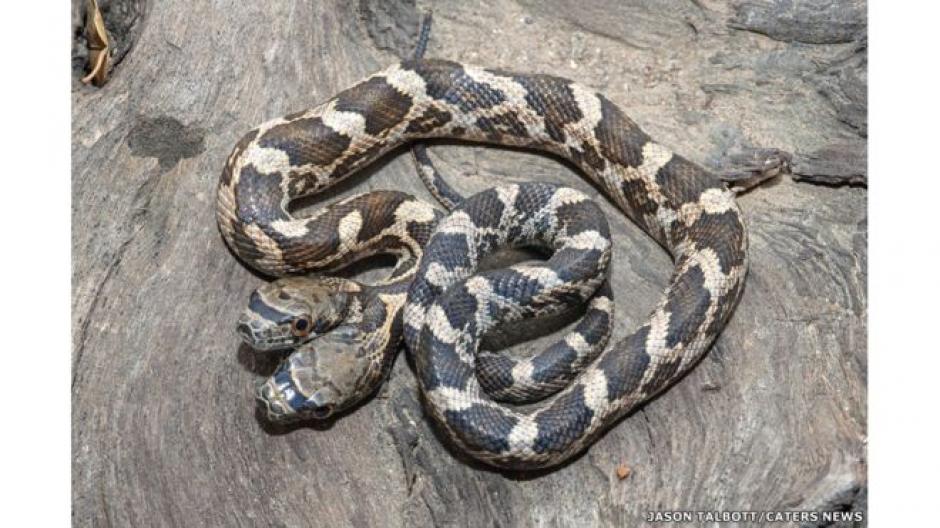 Una extraña serpiente de dos cabezas fue descubierta en una zona silvestre de Kansas, Estados Unidos.