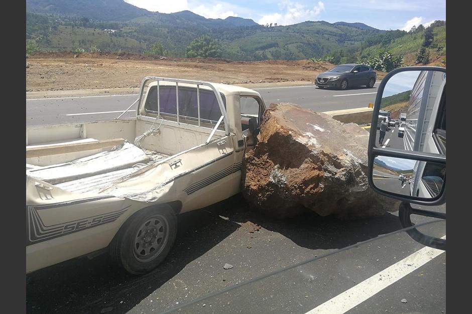 La roca cayó sobre un vehículo tipo picop y no se reportan personas heridas.