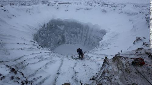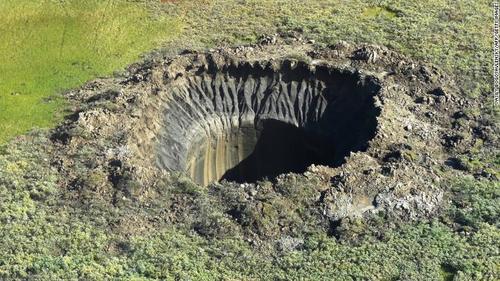 Un grupo de investigadores rusos descubrió un enorme cráter de 30 metros de profundidad y 20 metros de ancho sobre la tundra siberiana.
