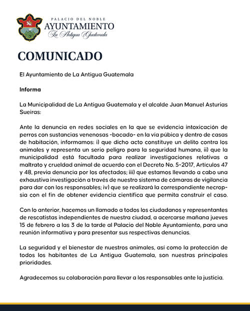 Ante la alta difusión de la noticia, el Ayuntamiento de Antigua Guatemala emitió un comunicado abordando el tema y explicando las medidas que desde ya toman para resolver el caso.