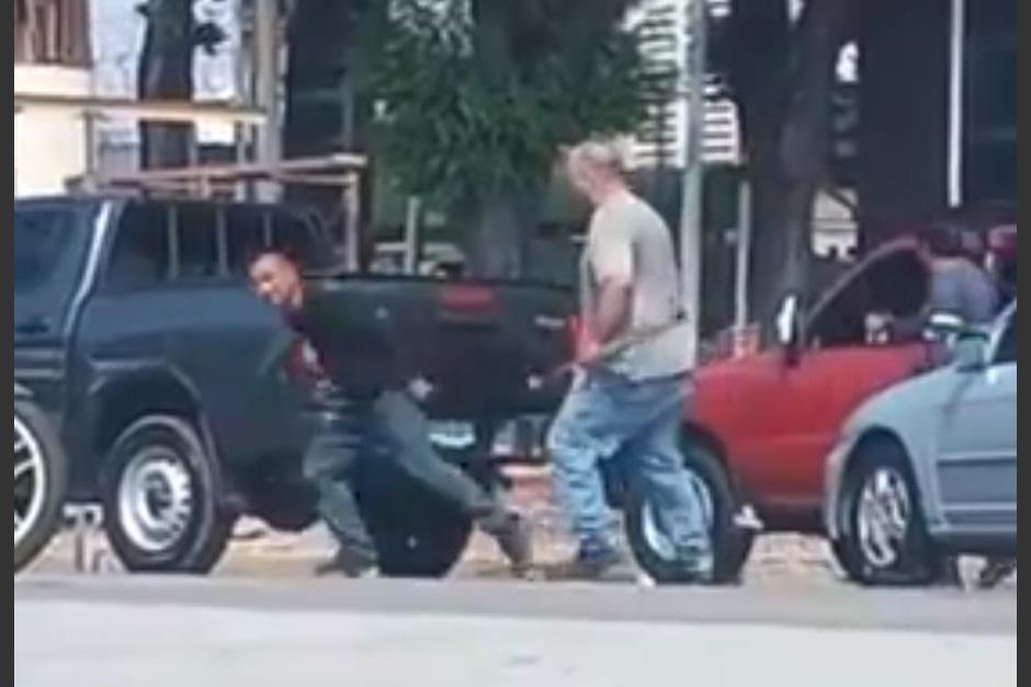 En redes sociales se hizo viral un video que expone el momento en que dos hombres protagonizan una intensa discusión en pleno tránsito de zona 5.