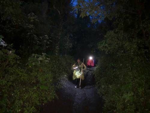 Cuando el sol se iba ocultando, en el bosque ya no llegaba la luz natural y cerca de las 6:20 se encendieron las linternas para iluminar el camino, mientras una gran cantidad de turistas en su mayoría extranjeros bajaban a marcha acelerada para evitar quedar atrapados en medio de la oscuridad, mientras que los más precavidos llevaban su lámpara portátil.