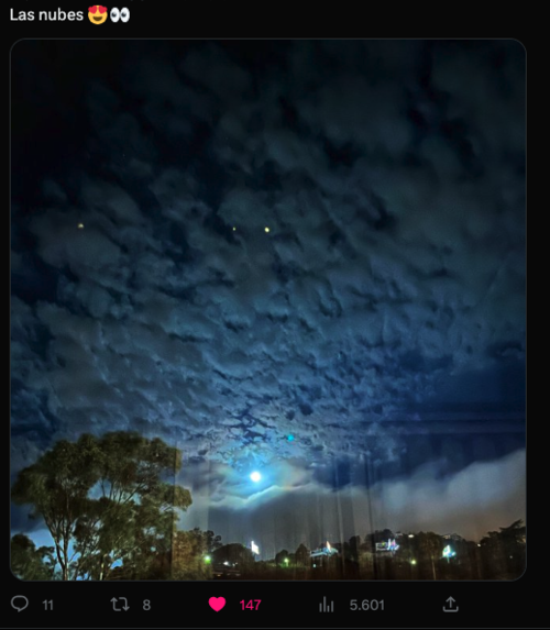 La extraña formación de nubes llamó la atención de usuarios en las redes sociales durante la noche del miércoles 8 de febrero.