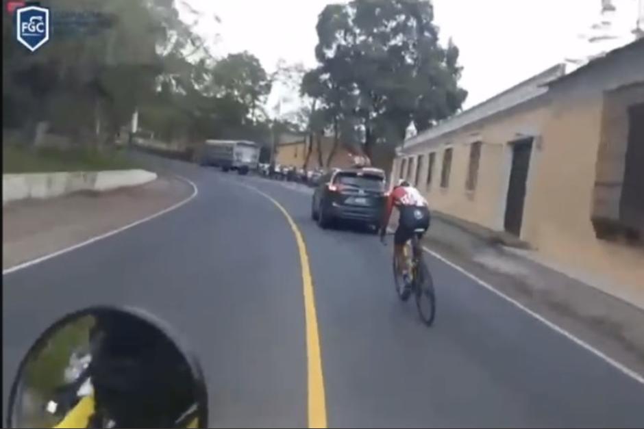 Durante la penúltima etapa de la vuelta a Guatemala, un conductor estuvo a punto de provocar un accidente al líder, Alder Torres, a inmediaciones de Ciudad Vieja.