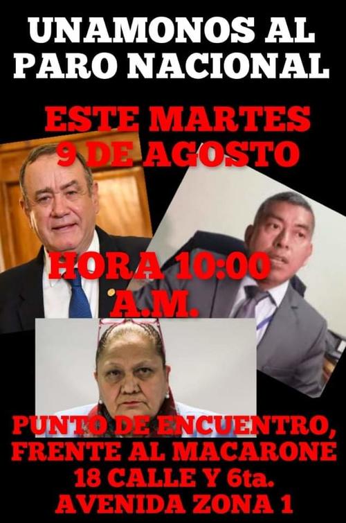 No obstante, otro grupo también pide unirse a la movilización y pone como punto de encuentro la 18 calle y 6a avenida de zona 1 a las 10:00 horas del martes 9 de agosto.