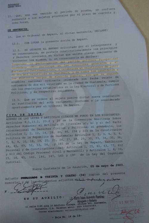 El viernes 5 de mayo, el partido Cambio, de los hijos de Manuel Baldizón, presentó un amparo en contra de Prosperidad Ciudadana, con el objeto de suspender su participación de esa agrupación política en las Elecciones Generales del próximo 25 de junio, pues consideran que se incurrió en varios vicios que atentan contra la Ley Electoral y de Partidos Políticos y su reglamento.