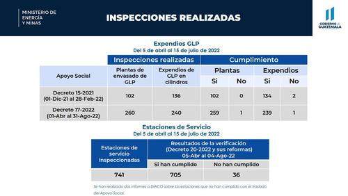 Por aparte, informó que han realizado 260 inspecciones a las plantas de envasado de GLP y 240 a los expendios de GLP en cilindros y que solo en una planta y en un expendio se encontró que no se estaba cumpliendo con el apoyo temporal.
