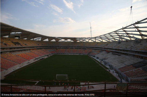 El antiguo Estadio Vivaldão, ubicado en un lugar privilegiado cerca de la selva más extensa del mundo, ha sido modernizado con ocasión del Mundial y rebautizado con el nombre de Arena Amazonia.