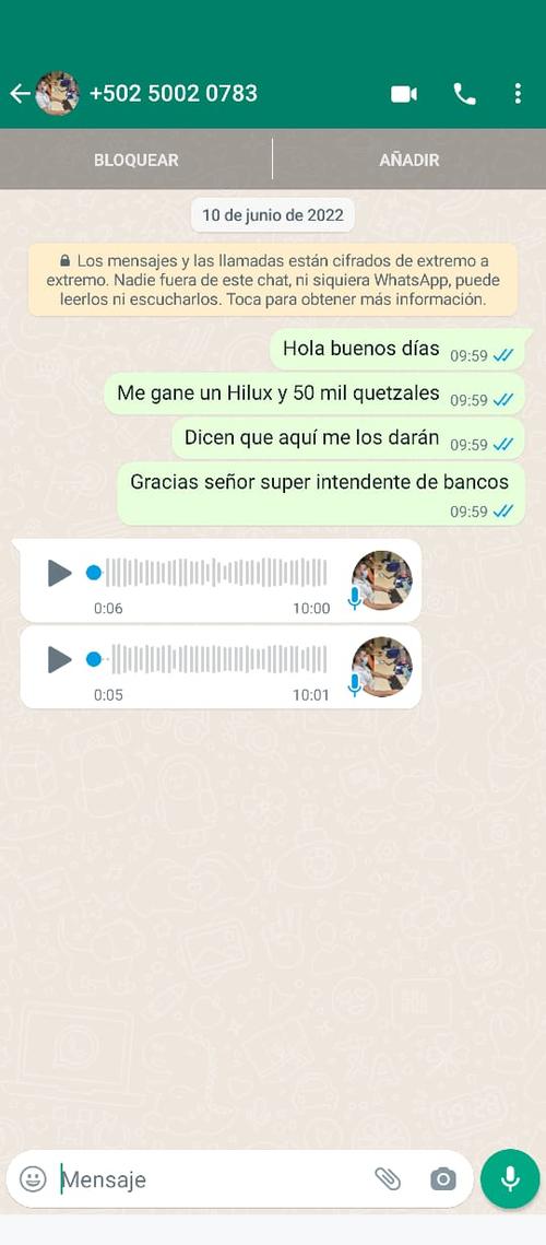 En el mensaje de voz se dice que el sorteo está avalado por la Superintendencia de Bancos (SIB), pero que debe comunicarse con el supuesto gerente de dicha institución que se hace llamar José Franklin García Barahona.